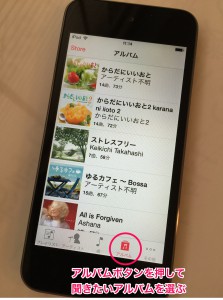 2:アルバムボタンをタッチ・聴きたいアルバムを探す